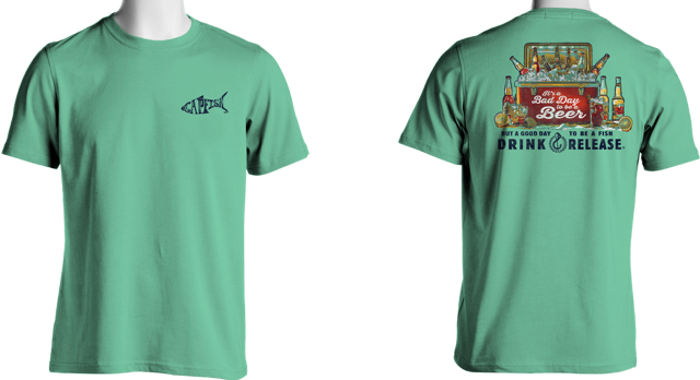 Enjoy your favorite Drink & Release moment with our "Bad Day To Be A Beer" Short Sleeve T-Shirt. They are 100% Cotton, Ring Spun with a Heavy Garment Dye. We have them available in two colors and multiple sizes. A perfect item for enjoying the warmer seasons while remembering the good times with your friends.